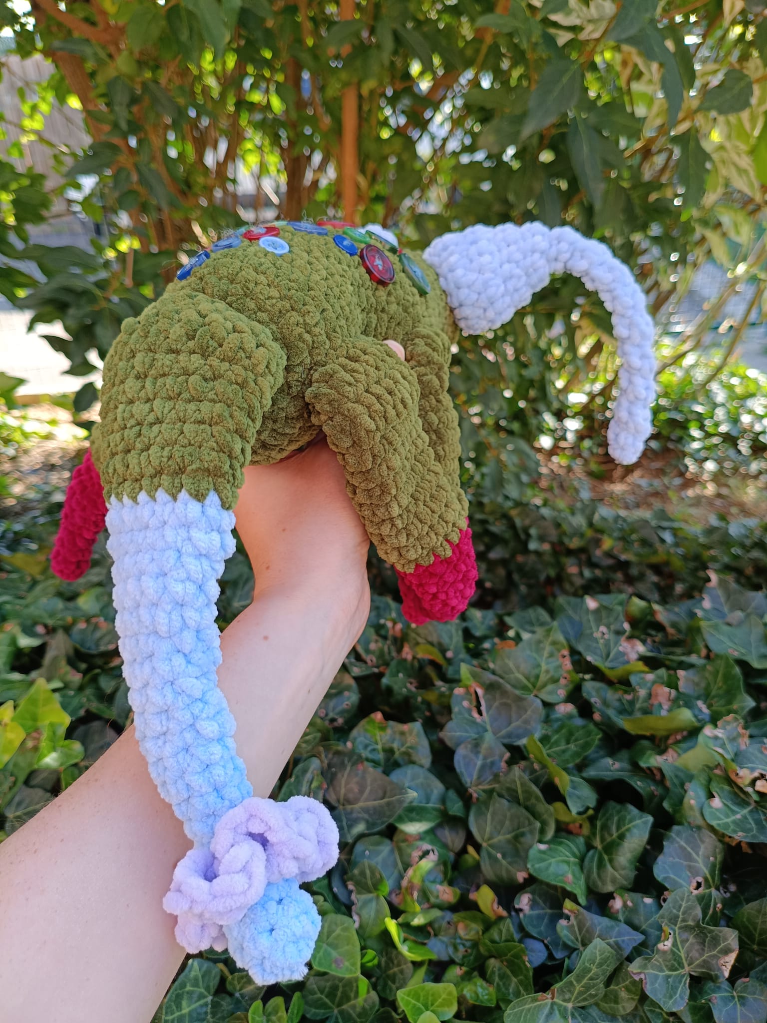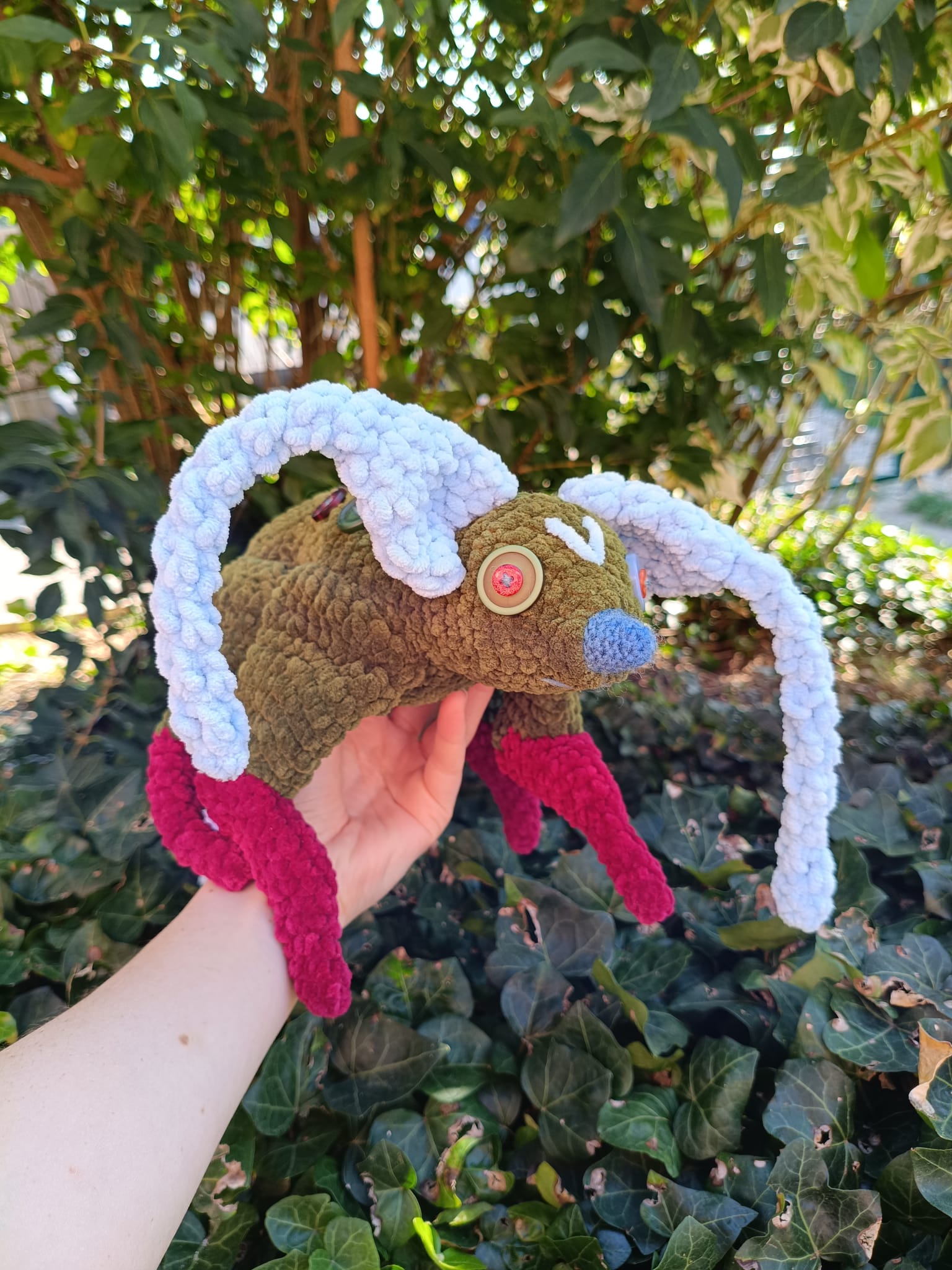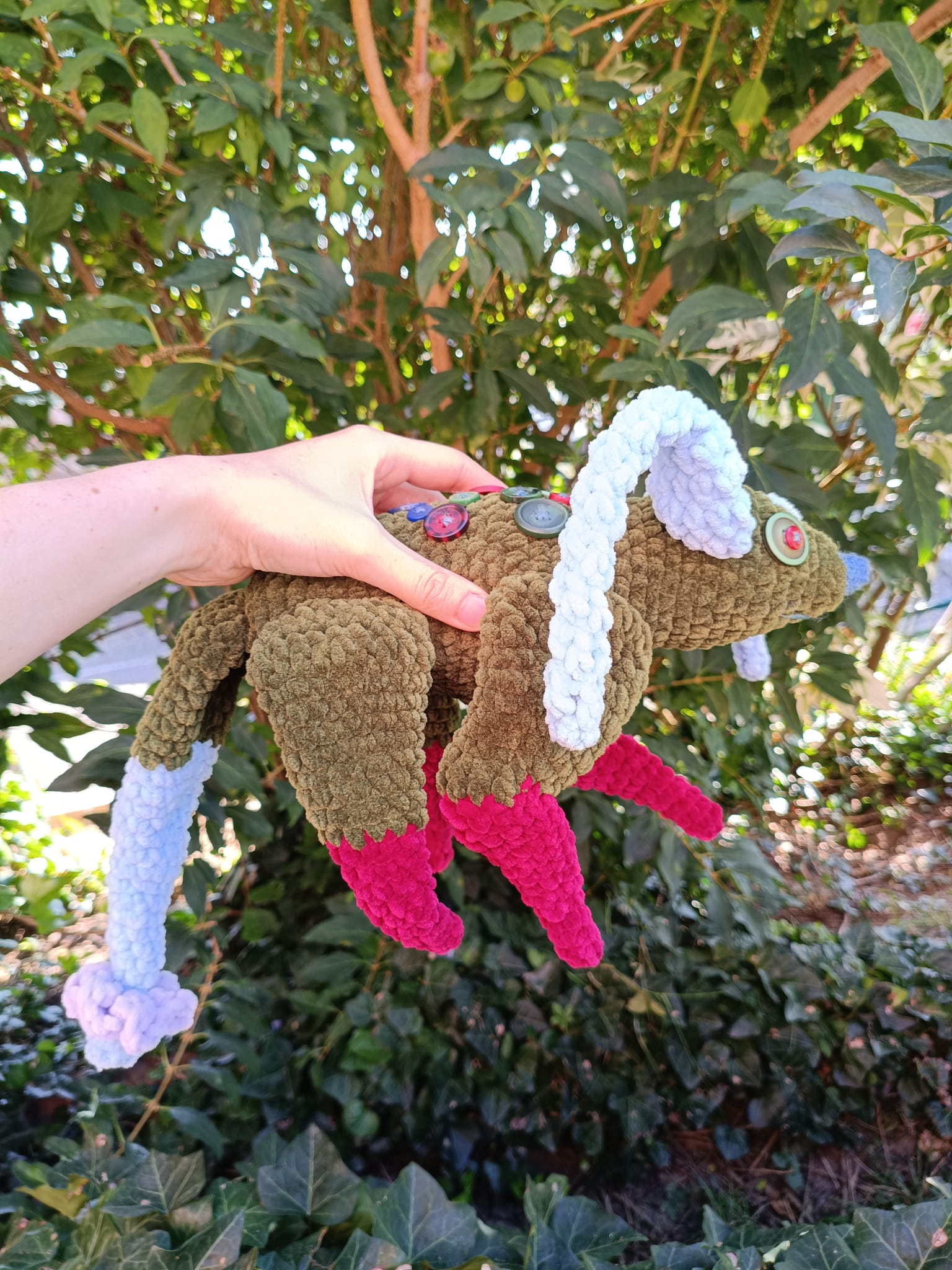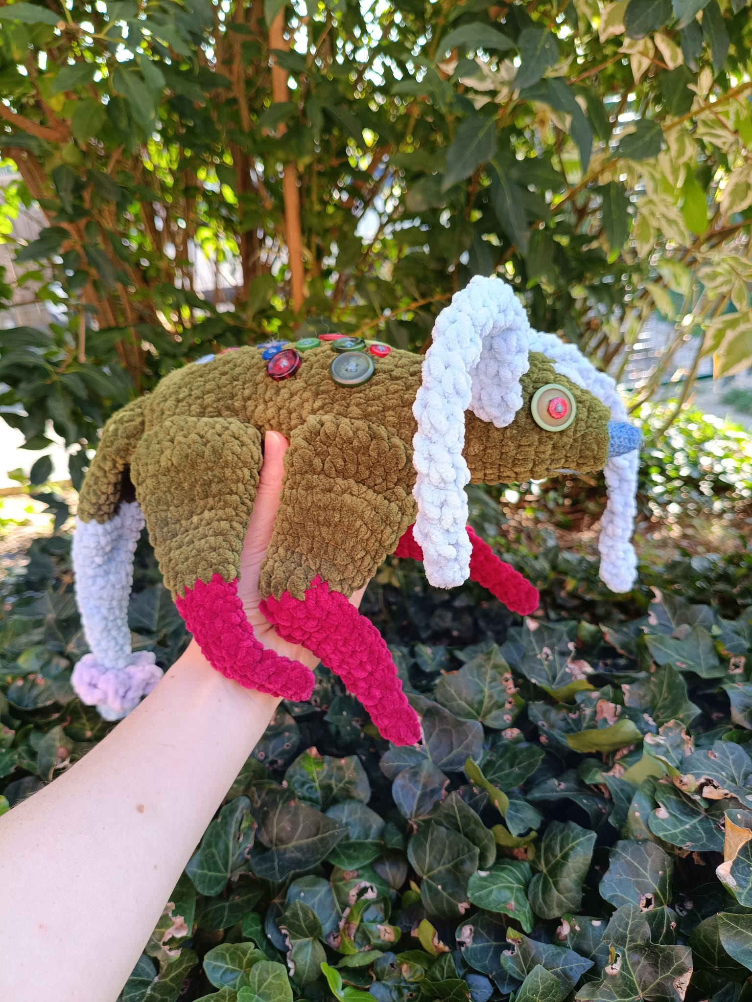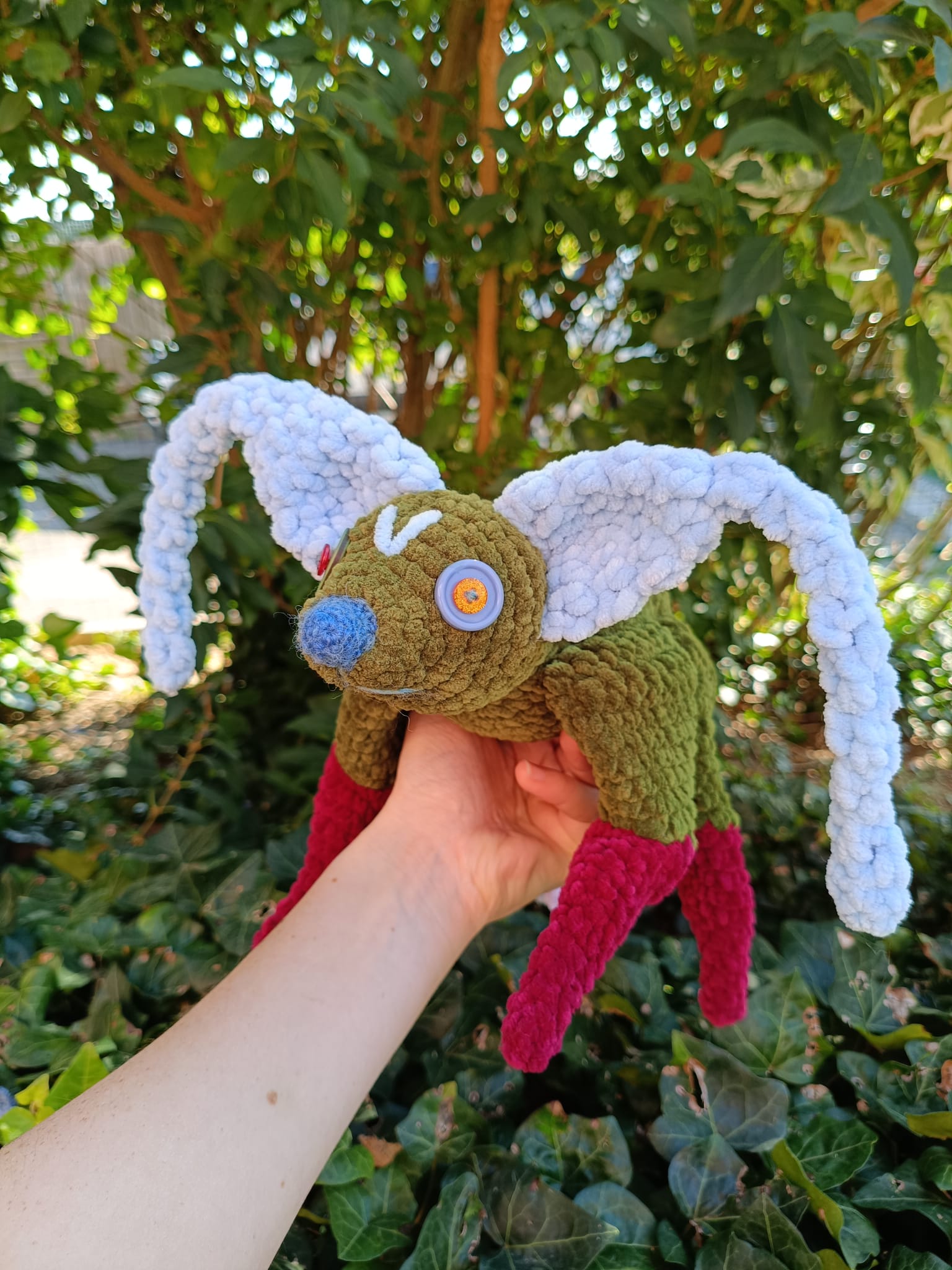 Peluche en laine chenille douce avec des yeux de sécurité (Attention: ne pas mettre entre les mains d’enfants en bas âge).